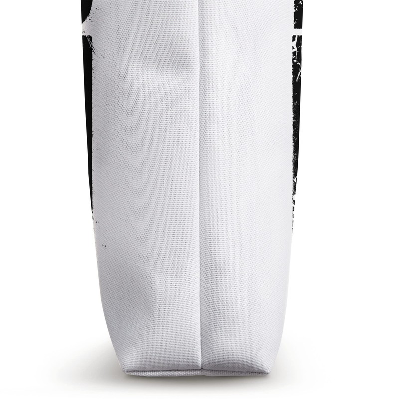- 16” x 16” bag with two 14” long and 1” wide black cotton webbing strap handles.