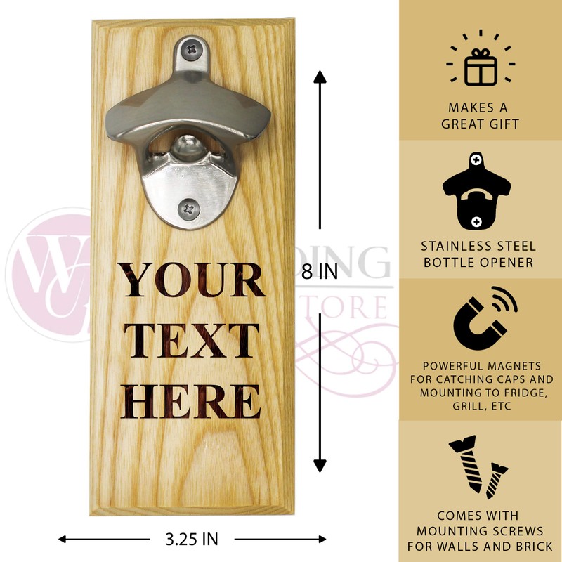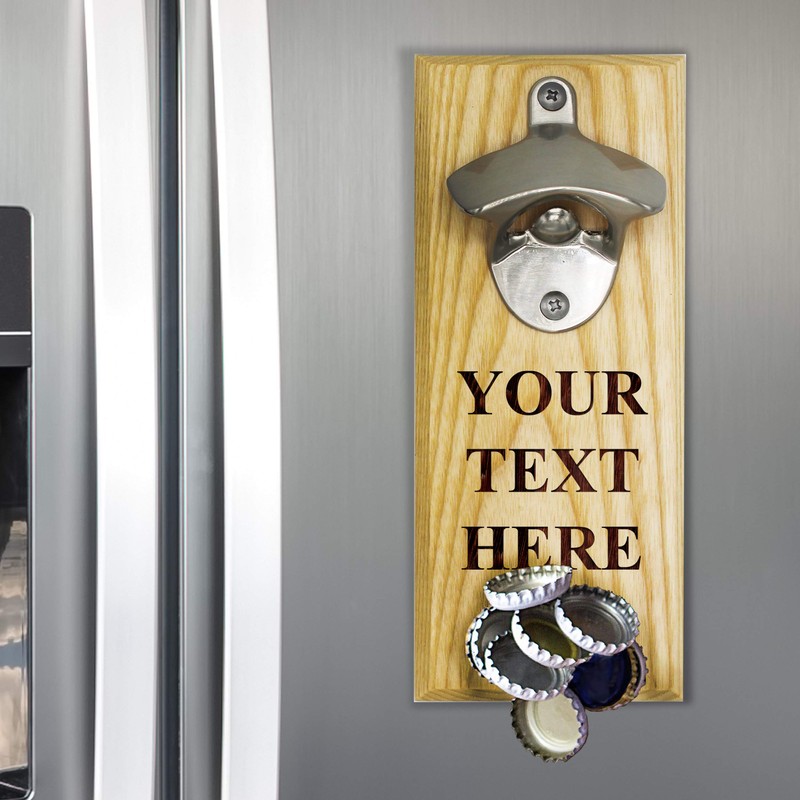The Wedding Party Store Custom Engraved Wall Mounted Beer Soda Pop Bottle Opener with Magnet Cap Catcher - Personalized with Your Custom Text (Maple)
