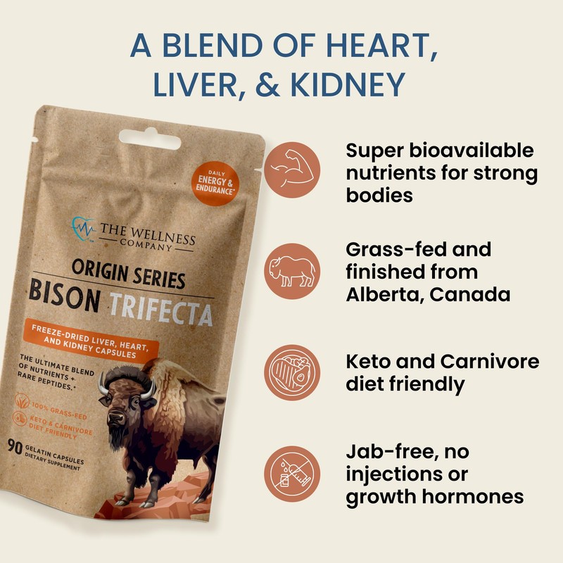 - Support your daily vitality with The Wellness Company Origin Series Bison Trifecta Freeze-Dried Organ Capsules, the ultimate blend of nutrients.