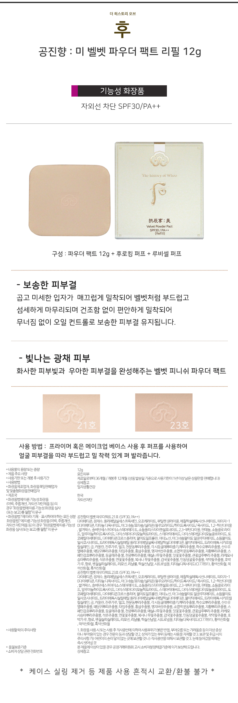 더후 공진향 미 벨벳 파우더 팩트 교체용 리필 SPF30 PA++">