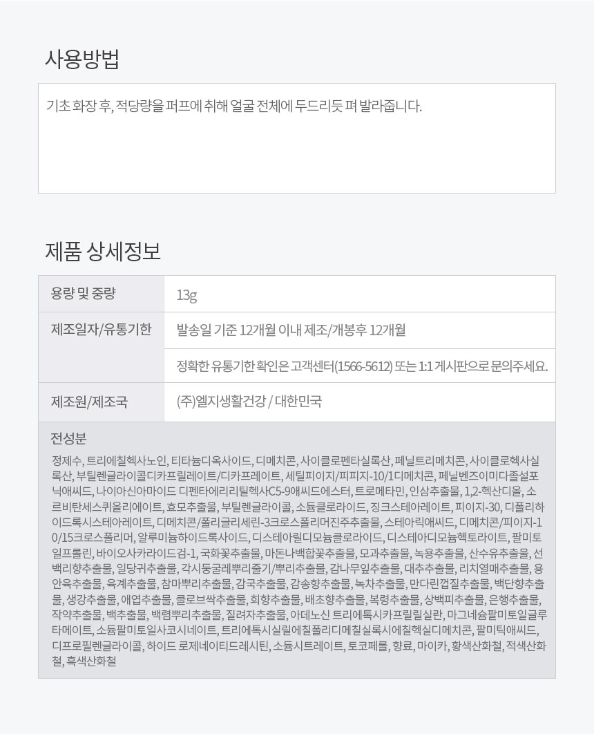 더후 공진향 설 미백 수분광 쿠션 리필 13g 3중 기능성 쿠션