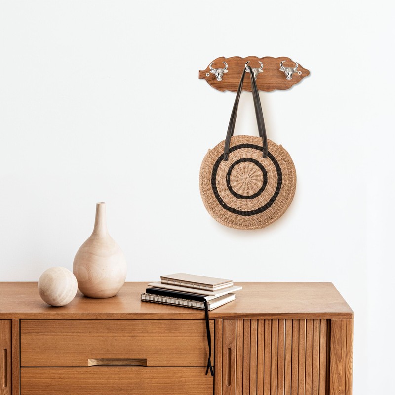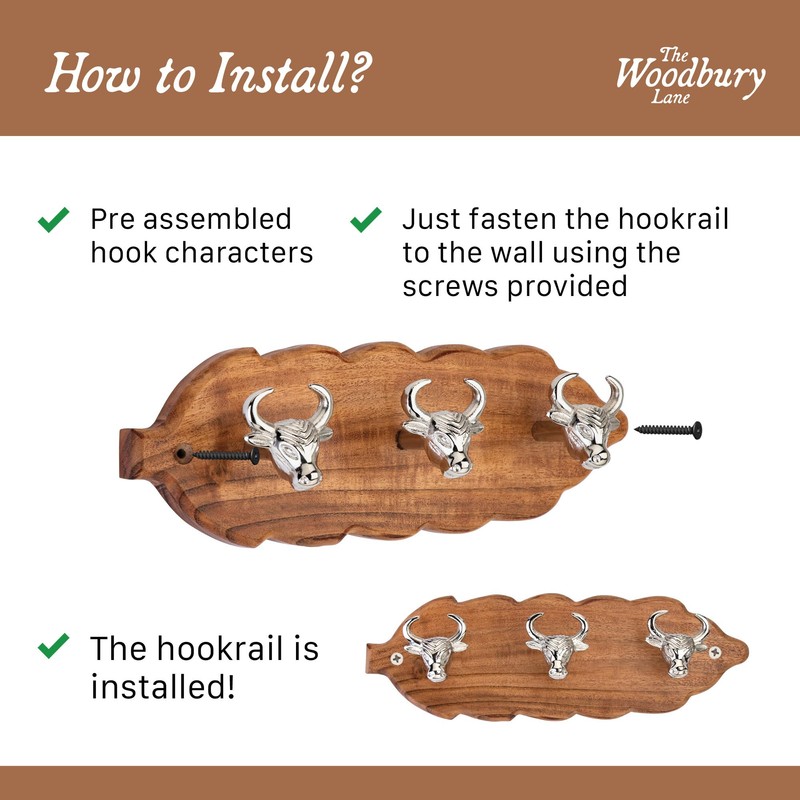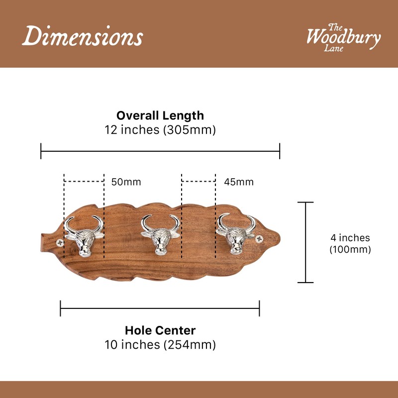 - ✅ Premium Polished Nickel Bull Head Hooks – The Woodbury Lane features three intricately designed bull head-shaped hooks, providing a sturdy and stylish solution for hanging coats, hats, bags, and keys.
