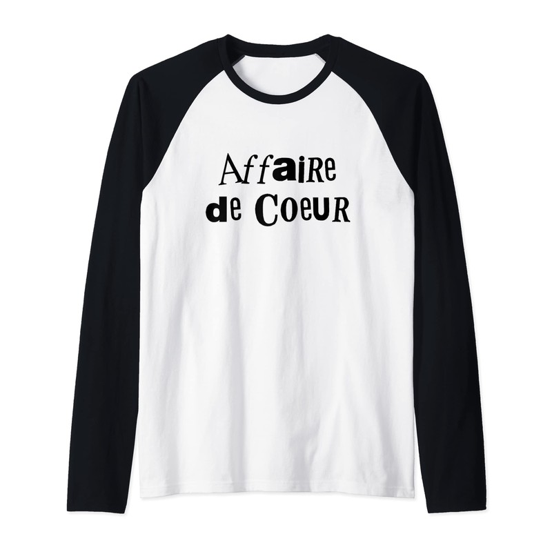 The Words Affaire De Couer in Punk Style Letters Raglan Baseball Tee