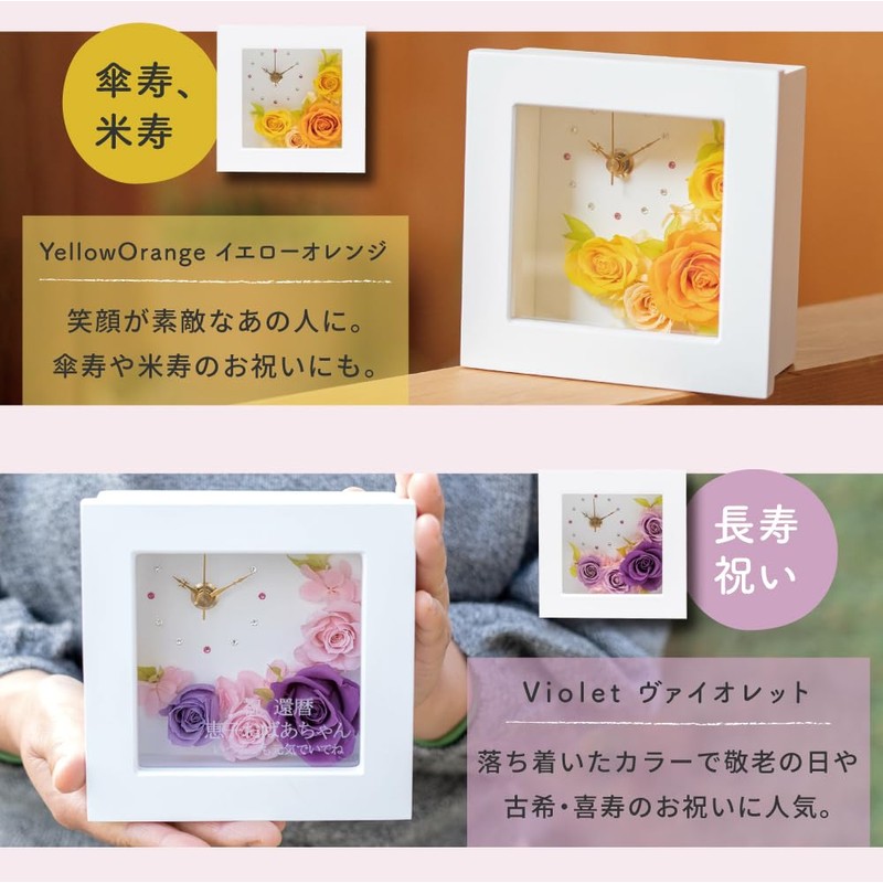 THE WOW Flower Clock SS Name Preserved Flower Watch Mother's Day Anniversary Gift Brown x Violet