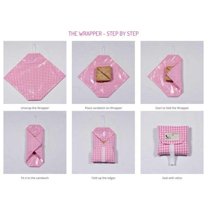 - No more wrapping up sandwiches or snacks then throwing the packaging away. The Wrapper can be used day after day with just a wipe down of the LDPE food side and an occasional rinse in the sink to get rid of any spill marks on the outside (machine washable too on a cool wash) – all sealed up with a Velcro strip to keep it fresh…..INGENIOUS!!!!
