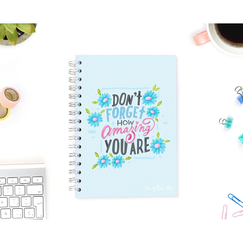 La portada es de pasta dura, y tiene argollas para que puedas abrirla por completo y utilizarla cómodamente. Cuenta con 160 páginas de 120 gramos, así que puedes darle color a tus apuntes usando tus marcatextos y plumas bonitas.