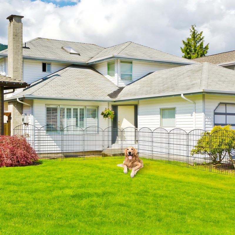 - 【Wide Range of Uses】Whether it's used to protect your garden or as a practical barrier at the border of your yard, this iron fence does the job perfectly. It can be used not only as a decorative fence, flowerbed fence, but also as a dog fence or animal fence to safely and securely prevent animals from breaking into your garden or yard. It effectively divides yard space, defines private territories and skillfully avoids the intrusion of small animals.