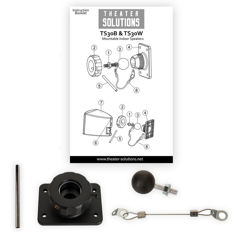 - WHAT'S IN THE BOX - 2 Theater Solutions by Goldwood TS30B speakers, mounting brackets with hardware, instruction manual. Use for home theater surround sound, whole house audio systems, business or retail installations, patios, decks, pool and spa settings