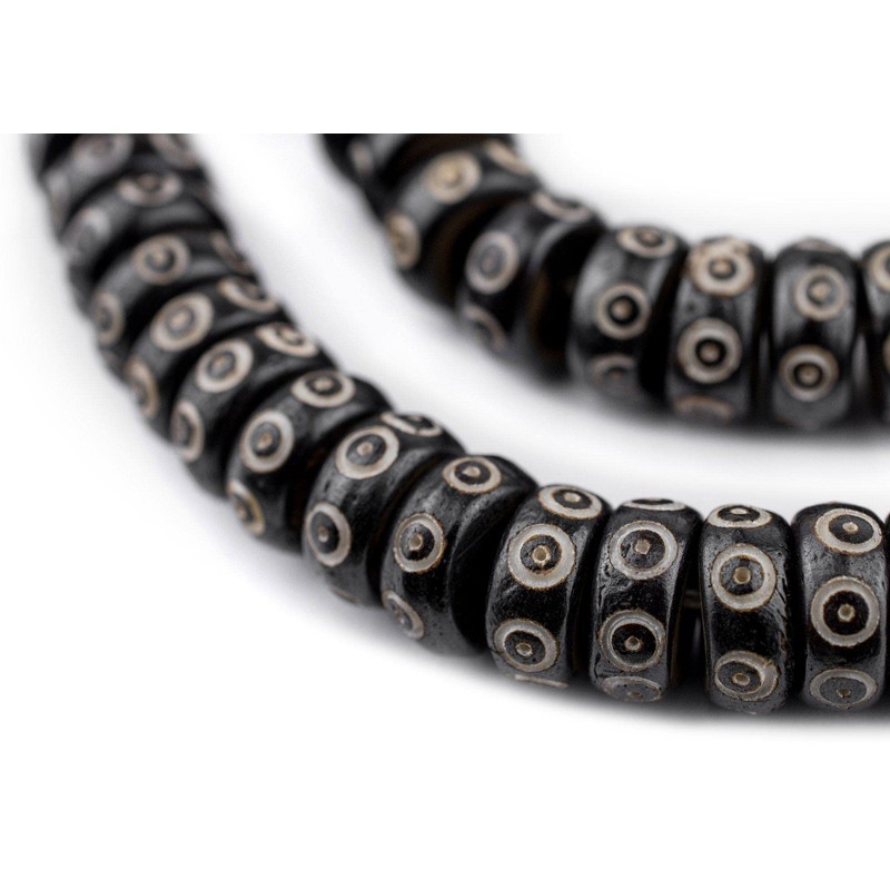 TheBeadChest Black Carved Eye Disk Bone Mala Beads (12mm)