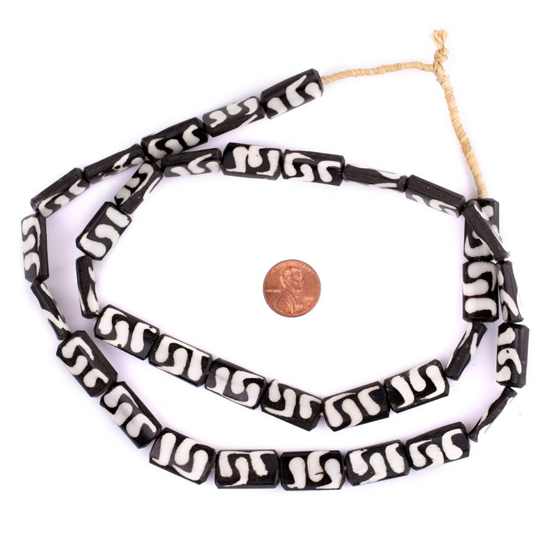 TheBeadChest Swirl Design Batik Bone Beads (Rectangular)
