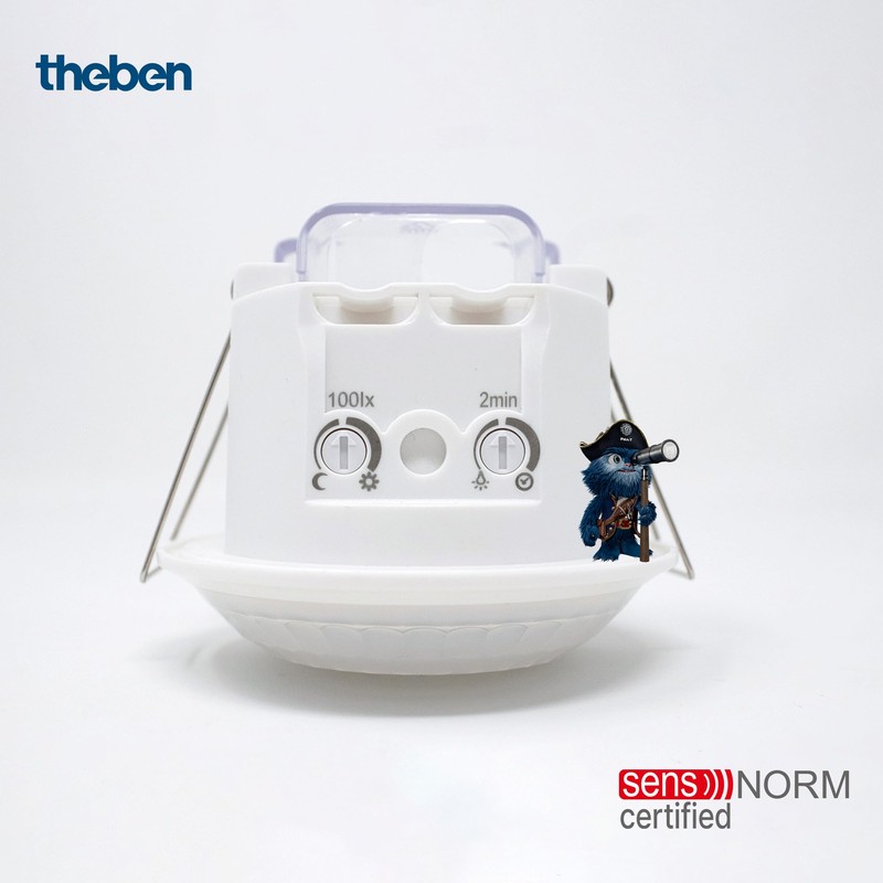Let go and hoist sail: the new Theben interior motion detector PIRA T8 DE goes on a cape. With its round detection range 360° with 8 m diameter (sensNORM certified), it reliably detects movements "on board" and switches up to 200 W LED, so that no one remains unrecognised and no one has to act in the dark. Thanks to its inconspicuous design, it is seldom discovered. And thanks to the presence function, the captain always remains sufficiently supplied with light when planning in the cabin with a diameter of 3 m at 2.5 m mounting height. The PIRA T8 DE is mounted by means of ceiling installation and detects movements e.g. in the storage and storage room under deck. The adjustment is very easy with a potentiometer. If there is sufficient daylight at the installation location, the light stays off (or is switched off) - this saves energy and cash coins. And if after a buddle full of rum, the way to the bunk should get a little longer: the lag time light is adjustable from 5 seconds to 15 minutes. By the way: the PIRA T8 DE is tested according to the hard Theben requirements with 40,000 switching cycles and reliably survives even wild rides.
