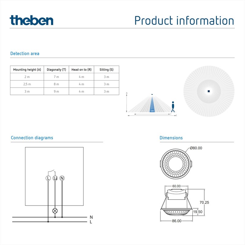 • Nothing escapes it: thanks to the presence option, even small movements are registered during sedentary activities (diameter 3 m) at 2.5 m mounting height)
