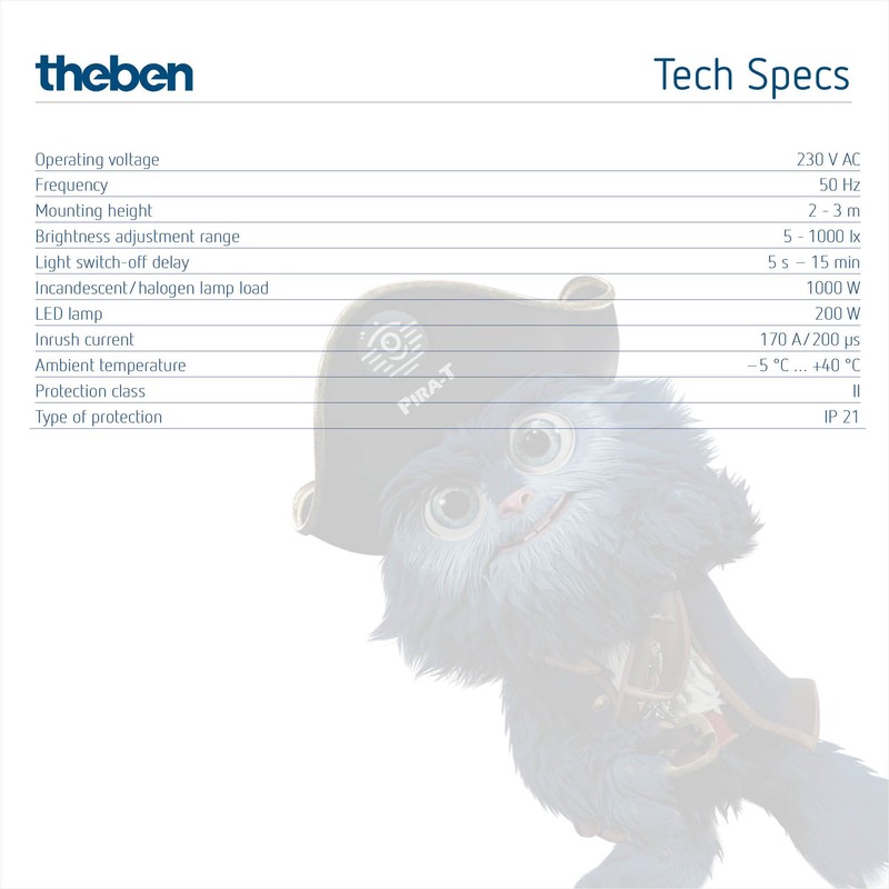 Theben 1030200 PIRA T8 DE Motion Sensor for Indoor Use, 200 W LED, Detection ...