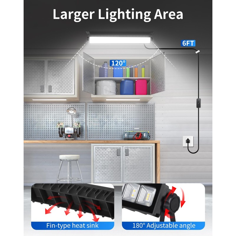 - Easy to install: With 6ft power cord and on/off switch, the plug in shop light is suitable for garage, workshop, or any spot that needs glow. It is also lightweight that can be easily installed alone