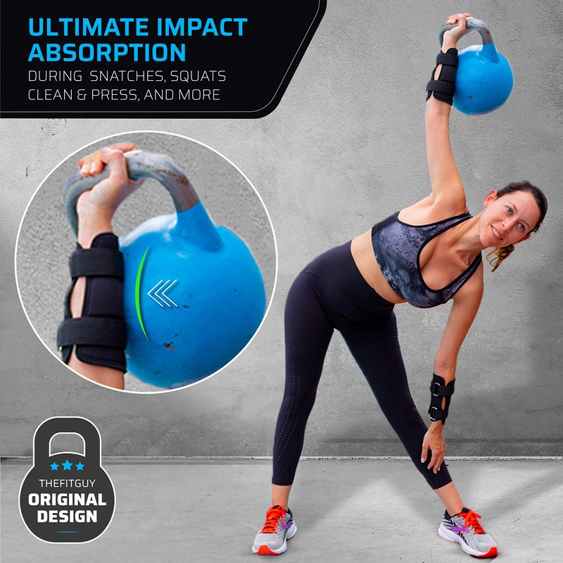 THEFITGUY Kettlebell Wrist Guards, Minimizing Forearm Wrist Bruises, Adjustable Straps for Optimal Fit on Skin or Shirt, Thick Padding for Kettlebell and Adjustable Kettlebell Impact Cushioning (Pair)