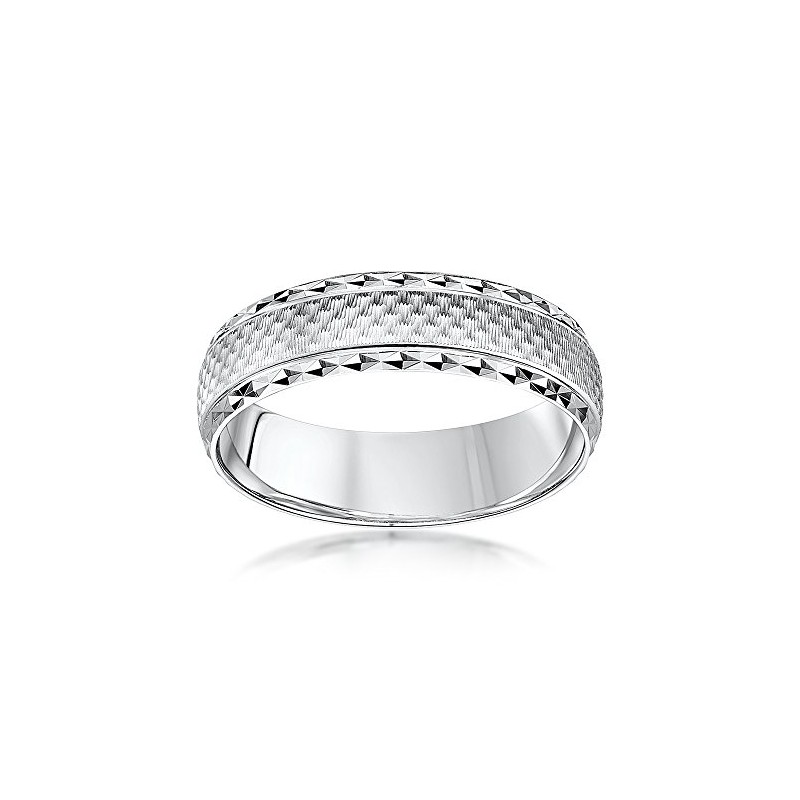 Theia Sterling Silver 925 Hammered Centre with Polished Designed Edge 6mm Wedding Ring - Size S