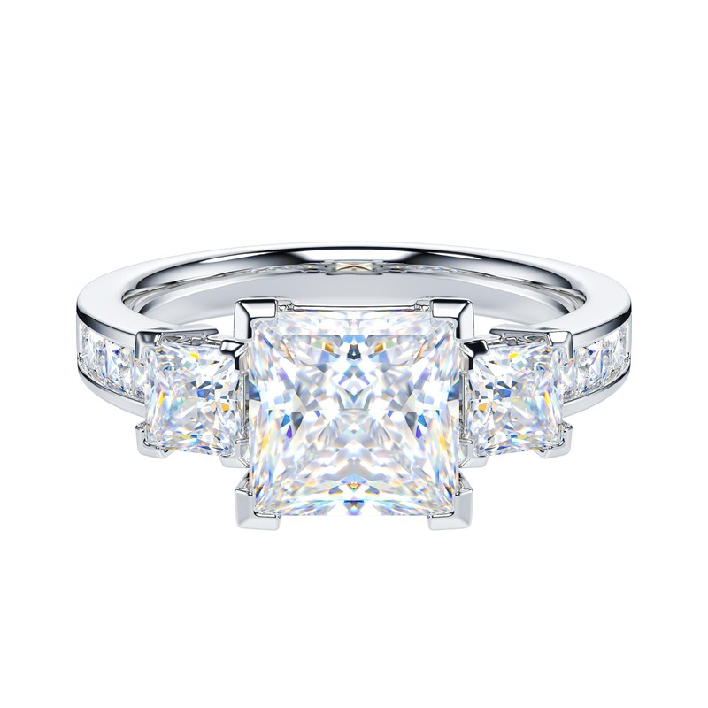 THELANDA Genuine Moissanite Sterling Silver Center 1.5CT Three Stone Style All Princess Cut Side Stones Promise Engagement Ring For Women (9)