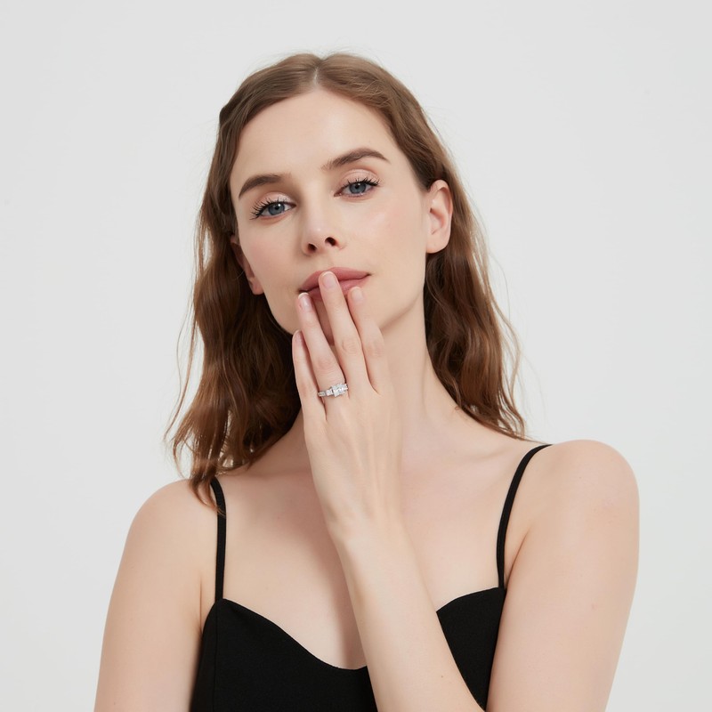 - Material: Crafted from authentic 925 stamped solid Sterling Silver, this ring is lead-free and nickel-free. All stones in this ring are genuine moissanites, ensuring exceptional quality and a stunning diamond-like sparkle. With proper care, this fine quality jewelry is designed to last a lifetime.