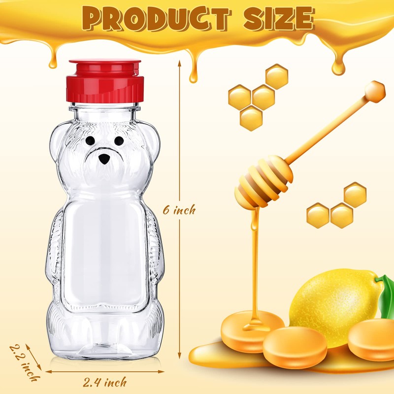 - Proper Size to Use: the honey bear jars measure about 8 oz/ 240 ml in capacity, and about 5.94 x 2.4 x 2.2 inches/ 15.1 x 6.1 x 5.6 cm in height, length and width, delicate and distinctive to hold honey, syrup and other fluids