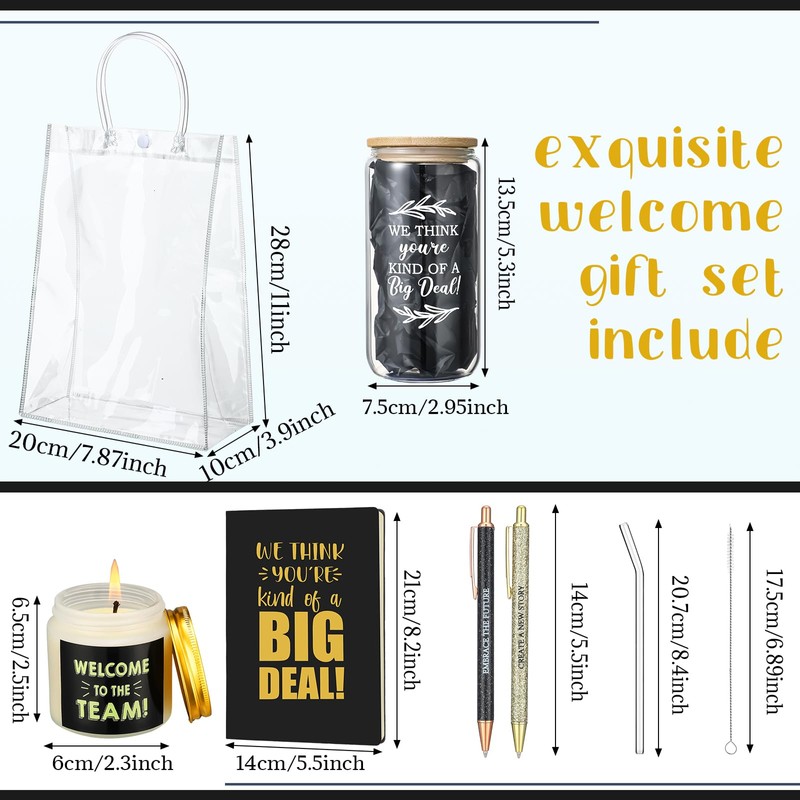 - Package Contents: you will receive a new employee welcome gift box, including 1 motivational leather notebook, 1 PVC handbag, 2 signature pens, 1 welcome aromatherapy candle, and 1 motivational glass water cup; The rich combination and color matching are very suitable as a gift for new employees