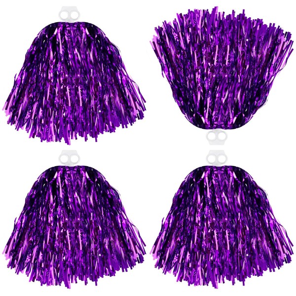 Thenshop Cheerleading Pom Poms 4 Pack Cheerleader Squad Spirited Fun Pompoms Pom Poms Cheer Poms Hand Flowers Metallic Foil Pompoms for Adults Sports Team Spirit Cheering Party(Purple)