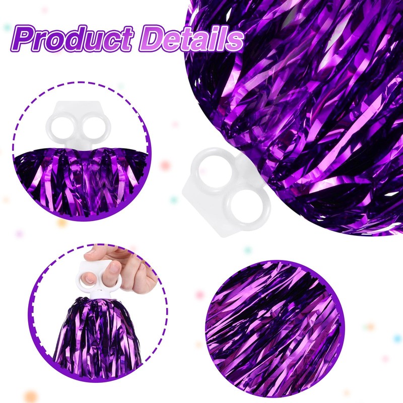 - Sufficient to Use or Share: the package contains 4 pieces of cheerleading pom poms in bright purple color, designed with plastic ring handles, enough to meet your cheering needs, and you can share them with cheerleaders