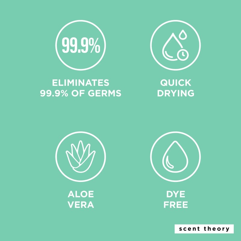 - Try other Scent Theory Hand Sanitizer Moisturizing Spray fragrances including Sandalwood Waves, Brazilian Coconut, Raspberry Mango, and Rainfall