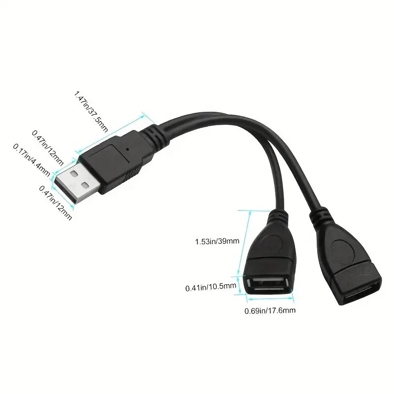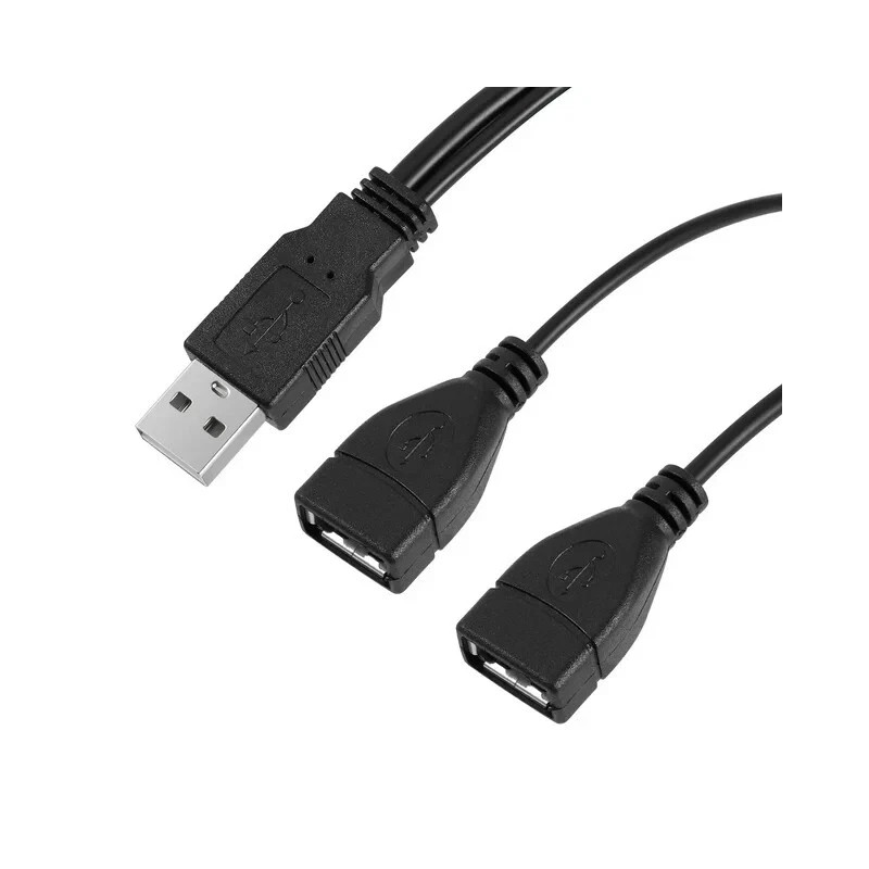- Plug and play, easy to use. This dual USB splitter allows power to be taken from 2 USB ports, such as a PC, external hard drive, intermittent, keyboard, and audio The USB Y splitter cable is commonly used in USB2.0 devices.