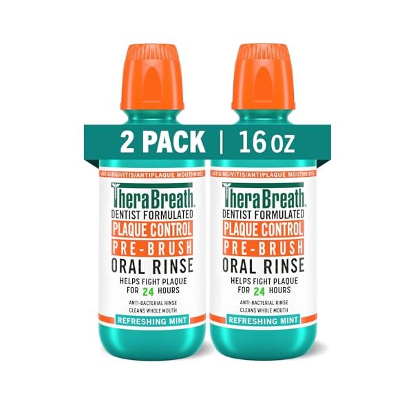 TheraBreath TheraBreath Plaque Control Pre-Brush Oral Rinse, Refreshing Mint Flavor, Antigingivitis and Antiplaque Rinse, Dentist Formulated, Alcohol Free, 16 Fl Oz (Pack of 2)