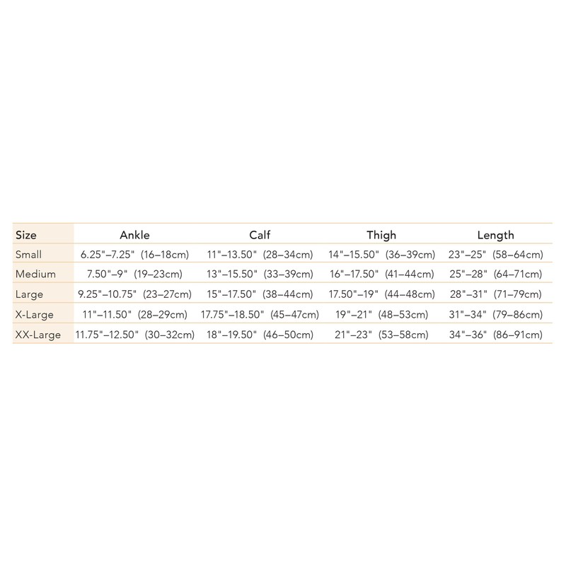 - A la moda, probado en laboratorio de 15 a 20 mmHg - compresión graduada mayor en el tobillo y disminuye gradualmente la pierna