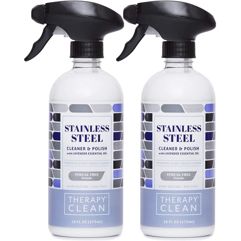 Therapy Stainless Steel Cleaner & Polish - 16 ounces (2 Pack) - Non-Toxic Fingerprint Removal and Leaves a Shine for Refrigerator Sink Grill