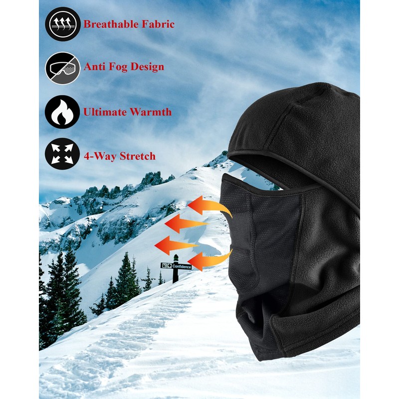 - WARMTH: This balaclava will keep your head, face, ears and neck warm during your winter activities. Designed with multiple ways to wear, this balaclava is the only headgear you will need this Winter.