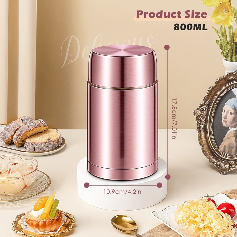 - 🥣【Long Lasting Insulation】This food jar features upgraded double-wall vacuum insulation and seamless welding technology to keep your food warm for 12-24 hours and cold for 12-24 hours. The durable food jar is the perfect travelling companion to ensure you have easy access to delicious food or drinks wherever you are. Ideal for the office, college, school or camping, it makes it easy to serve hot food without the use of a microwave.