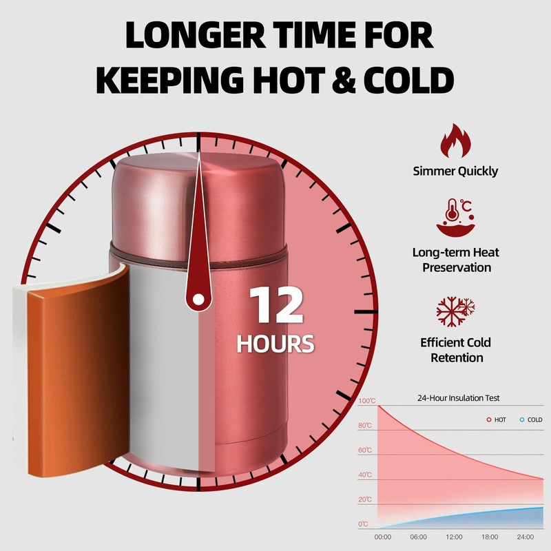 🥣Vacuum insulation technology for maximum temperature retention of hot or cold food. Delicious and weather-independent. Keeps hot for up to 12-24 hours and cold for up to 12-24 hours.