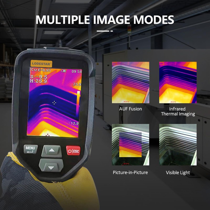 • The thermal imaging camera offers 4 image modes (AUF Fusion, Infrared Thermal Imaging, Picture-in-Picture, and Visible Light) and 8 color palettes (Iron, Rainbow, White Hot, Black Hot, Brown Hot, Blue Red, Hot Cold, and Feather), provide a wide range of options for visualizing thermal images.