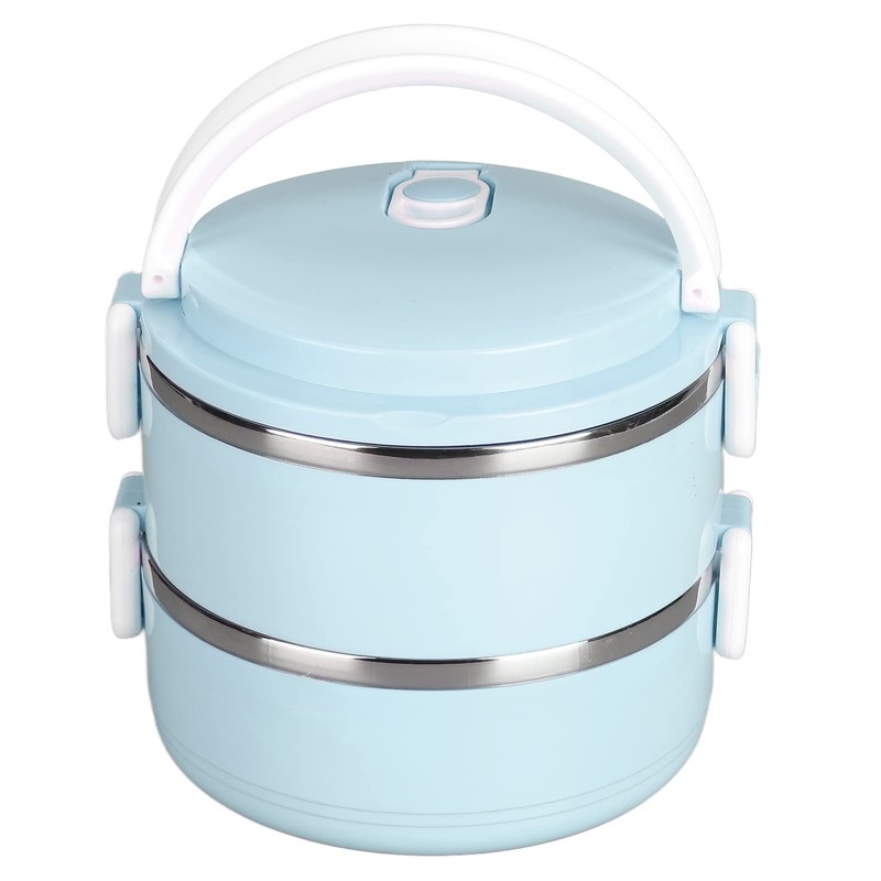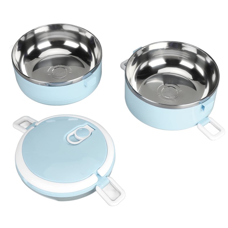 Thermal Lunch Box, Stackable Hot Food Insulated Box, 304 Stainless Steel Round Lunchbox, Sealed Food Containers for Adults Kids Teens for Work School Camping (Double Layer 304 Thickened (Nordic Blue))