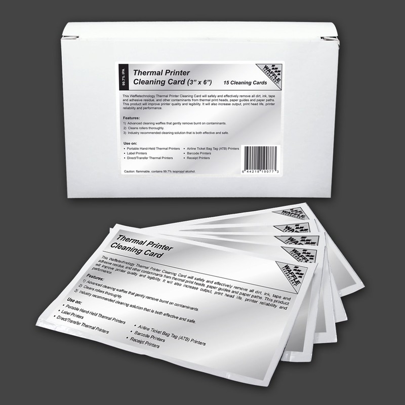 Thermal Printer Cleaning Card featuring Waffletechnology (3"/76mm) - 15 Cards