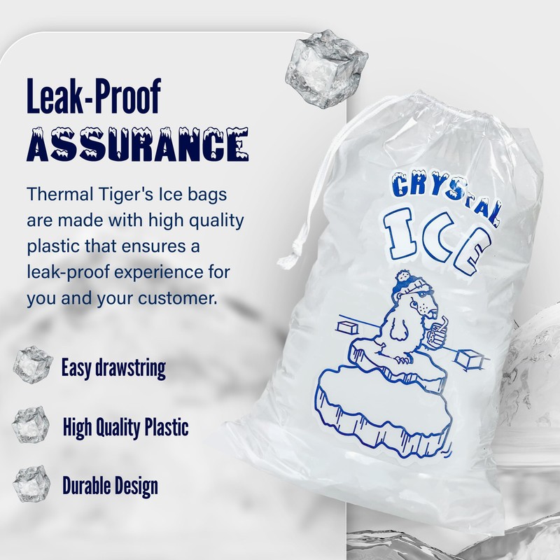 - Superior Quality: Our 20 LB ice bags are made from high-grade plastic, capable of holding and preserving ice efficiently without compromising the bag's integrity. Thermal Tiger's reusable plastic bags will be your ally for countless chores