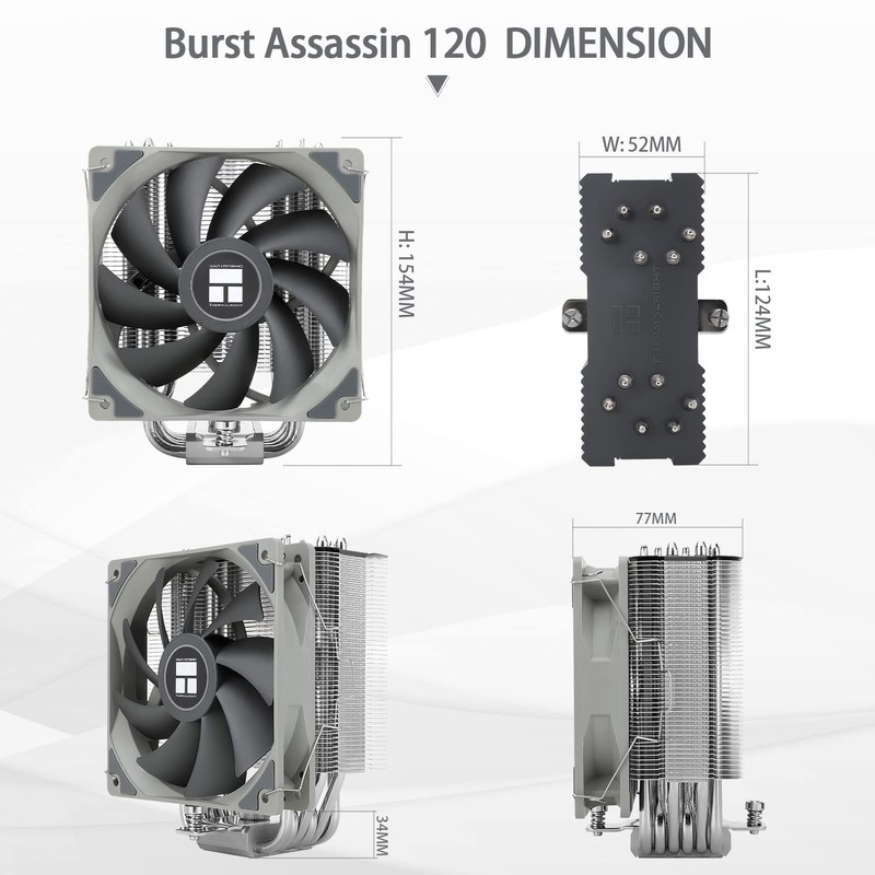 Thermalright Burst Assassin 120 CPU Cooler,154mm High Heatsink Cooler with 12cm PWM Fan,Computer Cooling for AM4/AM5;Intel 1851/1700/1150/1151/1200,6 Heat Pipes Heatsink Cooling