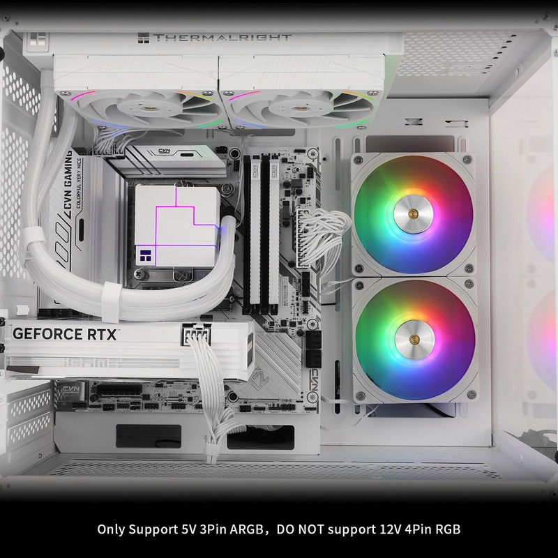 - [ARGB Sync] The ARGB of the water-cooling header is synchronized with the 5V 3pin on the motherboard to achieve light synchronization, 1600W colour soft light effects, efficient cooling while creating a dazzling world of light, support for light effects in series to avoid insufficient light slots.