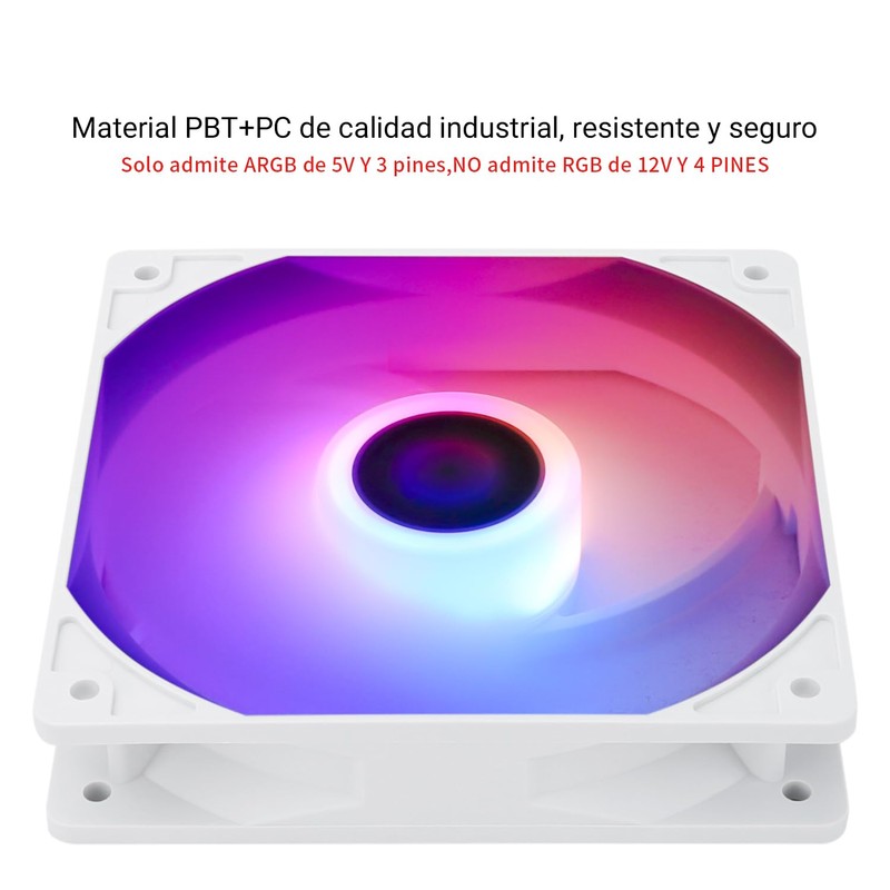 - [Tamaño del ventilador silencioso] Modelo: TL-C12CW-S X5, Tamaño: 120 120 25 mm, Velocidad: 1550 RPM ± 10%, Ruido ≤ 25.6dBA, Conector: 4 pines PWM, Interfaz de iluminación: 5V 3pin ARGB; Corriente: 0,20 A, presión de aire: 1,53 mm H2O, flujo de aire: 66,17 CFM, mayor flujo de aire para mejorar el rendimiento de refrigeración