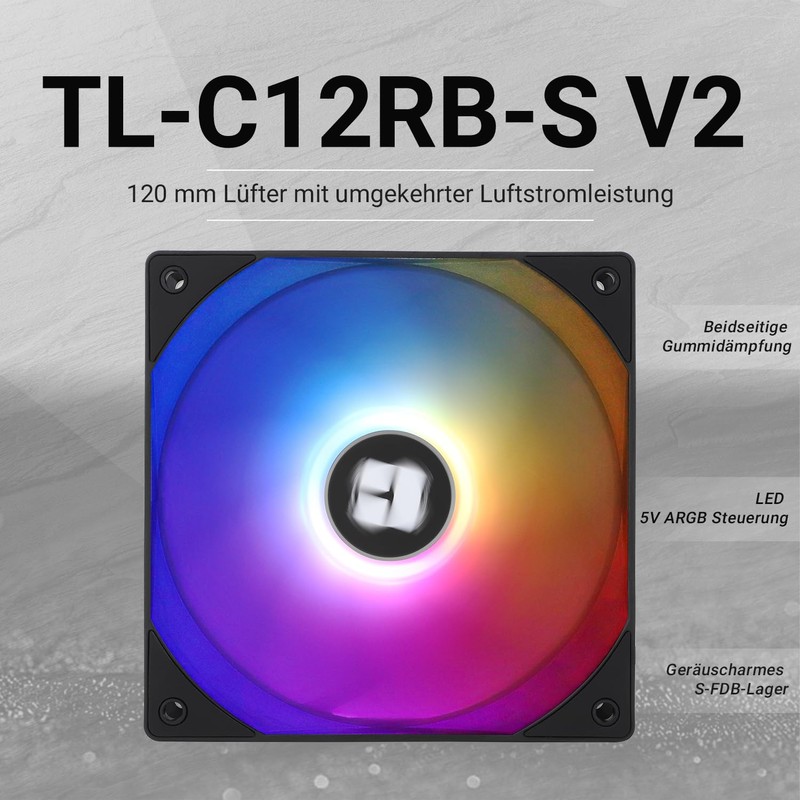 Thermalright TL-C12RB-S V2 CPU Fan Case Cooler PWM Fan, 4-Pin PWM Connection Computer Fan with ARGB Faceplate, 1500RPM Speed PC Cooling Reverse Fan (120 mm, Black)