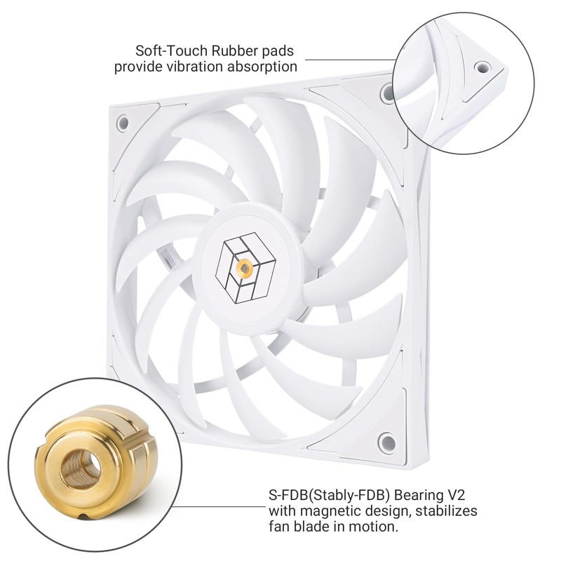 - [Good Bearing] The pwm fan adopts the S-FDB V2 bearing, which solves the problem of fan shaking and vibration in the hanging mode, and gives the fan a long trouble-free operation time and a longer service life.