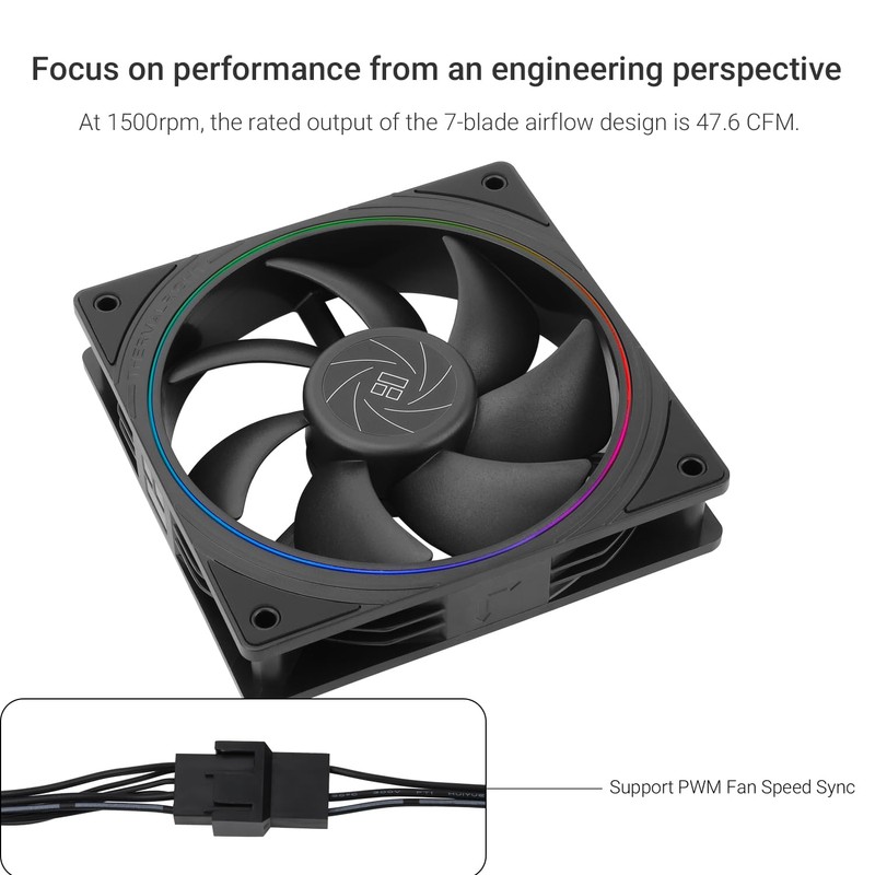 • 【Silent Fan Size】 Model: TL-S12 X3, Size: 120*120*25mm, Speed: 1500RPM±10%, Noise ≤ 23.2dBA Connector: 4pin pwm, Current: 0.15A, Air Pressure: 1.31mm H2O, Air Flow: 47.6CFM, Higher air flow for improved cooling performance.