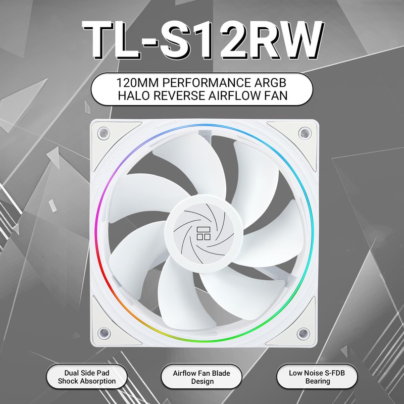 CPU fan Parameters:Model: TL-S12RWSize: 120*120*25mmSpeed: 1500RPM±10%Noise: 23.2db(A)Airflow: 47.6CFMWind pressure: 1.31mm H2OFan connection: 4PIN PWM Lighting interface: 5V 3PIN ARGBVoltage: 12V DCCurrent: 0.15ABearing type: S-FDBPackaging:Instruction manual x 1, TL-S12RW fan×1, screws x 4