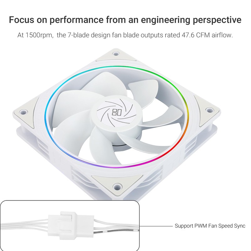 - [Silent Fan Size] Model: TL-S12RW, Size: 120*120*25mm, Speed: 1500RPM±10%, Noise ≤ 23.2dBA Connector: 4pin pwm, Current: 0.15A, Air Pressure: 1.31mm H2O, Air Flow: 47.6 CFM, Higher air flow for improved cooling performance.