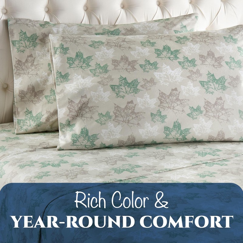 Thermee Micro Flannel Sheets Set, King-Size Sheet Set Having 18" Deep Pocket, Soft King Sheets Fit King Mattresses, Machine Wash/Dry, No Pilling, 2 King Pillowcases, Bed Sheets - Falling Leaves