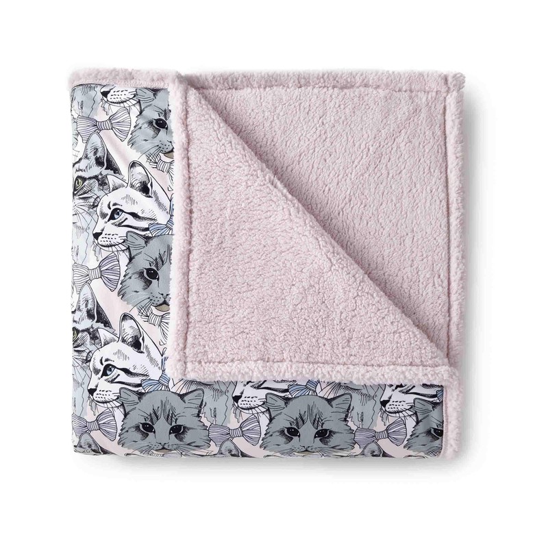 Thermee Micro Flannel Sherpa Blanket, Cat Medley, Full/Queen