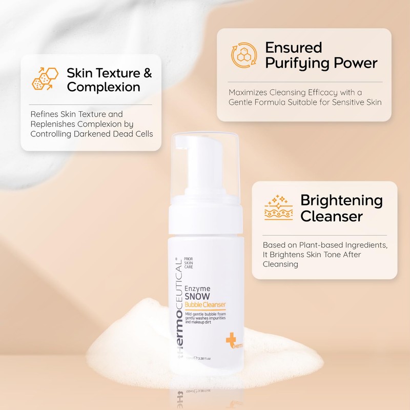 tHermoCEUTICAL Enzyme Snow Bubble Cleanser - Plant-Based Mousse Facial Wash, Papaya Enzyme for Skin Brightening, Refine Skin Texture, Micro Rich Bubbles, Gentle Cleansing, 3.38 fl.oz