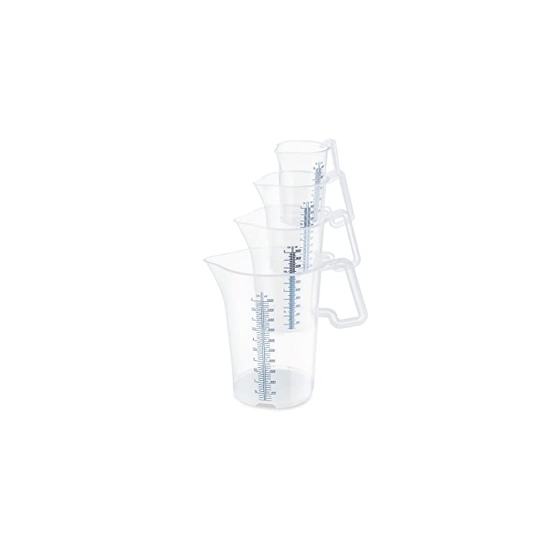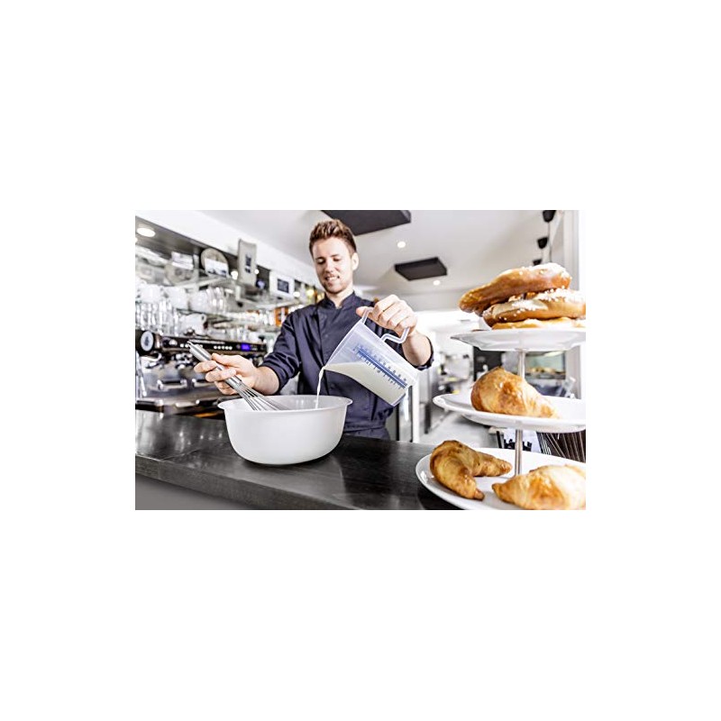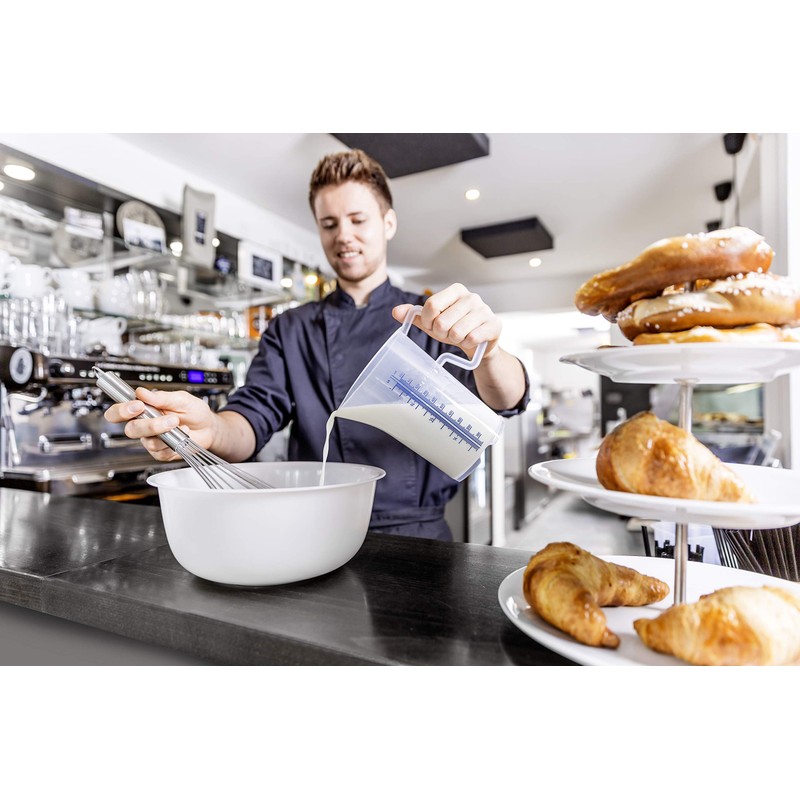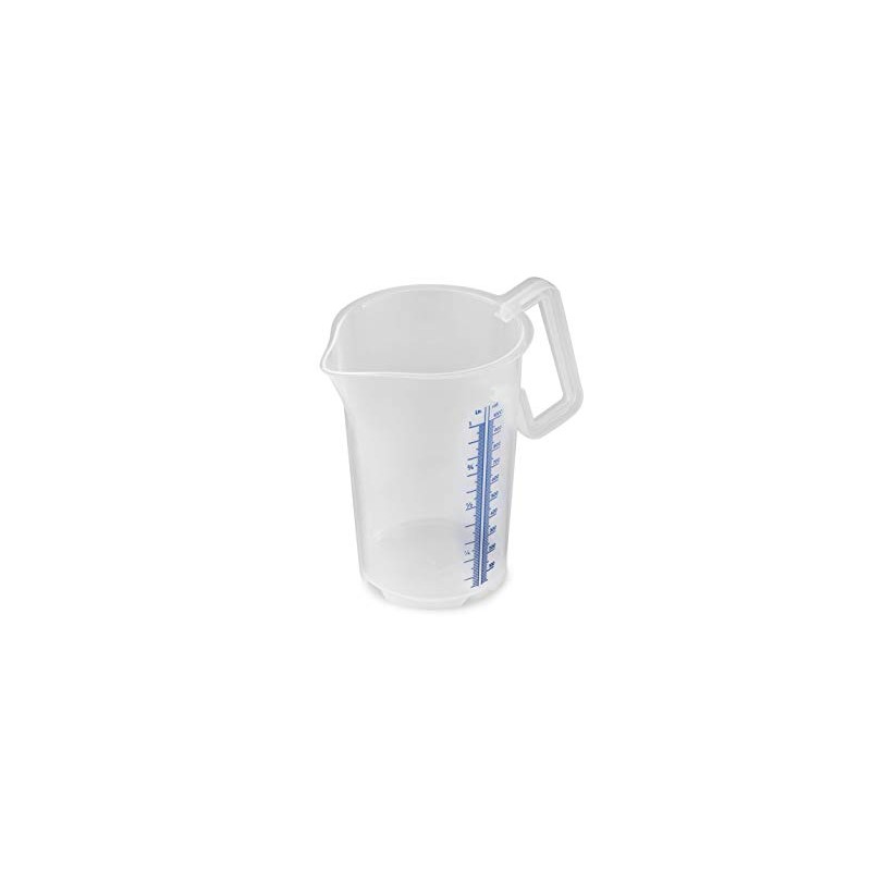 thermohauser Measuring cup with closed handle, 1000 ml, plastic PP, blue scale in litres and millilitres, clear
